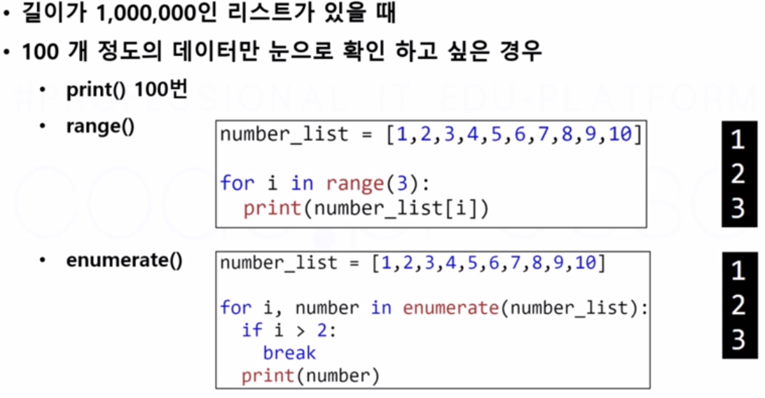 - for문에서 리스트 위치에 range(n) 사용, n은 반복할 횟수이며 0부터 n-1까지