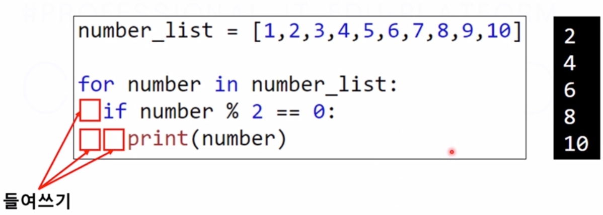 예시) 정수 값이 저장되어 있는 리스트가 주어졌을 대, 2의 배수만 출력