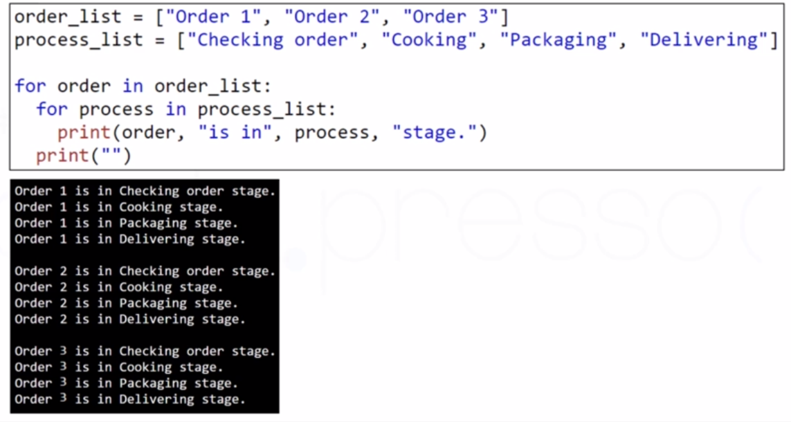 --> 출력 order_list에 있는 Order 1에 대해서 전체 진행, 이후 Order 2에 대해서 전체 진행, 마지막 Order 3에 대해서 진행