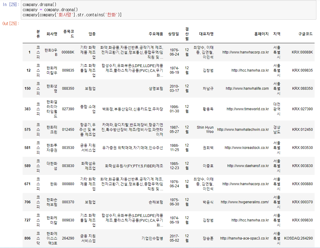 company[company['회사명'].str.contains('한화')]