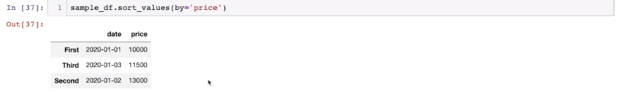 sample_df.sort_values(by='price') -> 기본적으로 오름차순으로 정렬됨