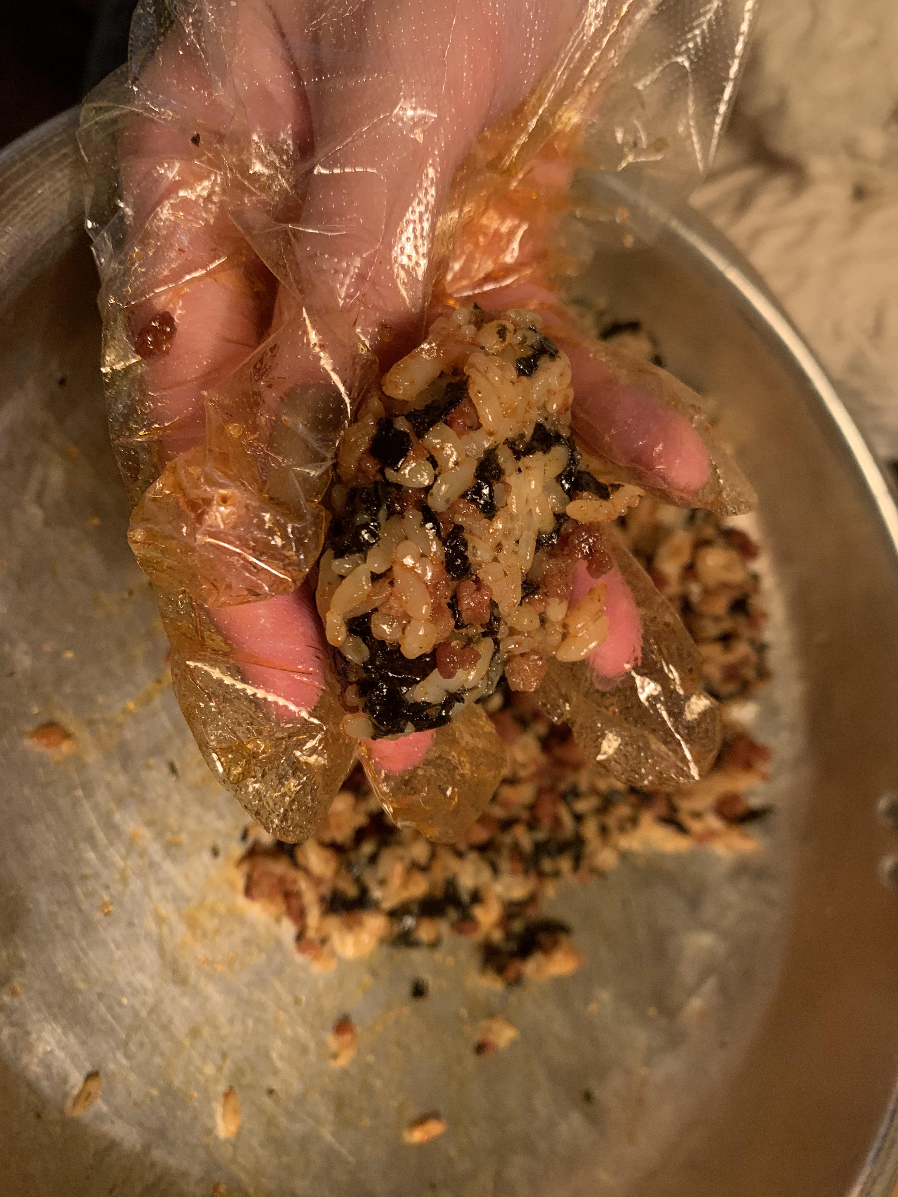 주먹밥은 밥이 고슬고슬해서 잘 안뭉쳐졌지만